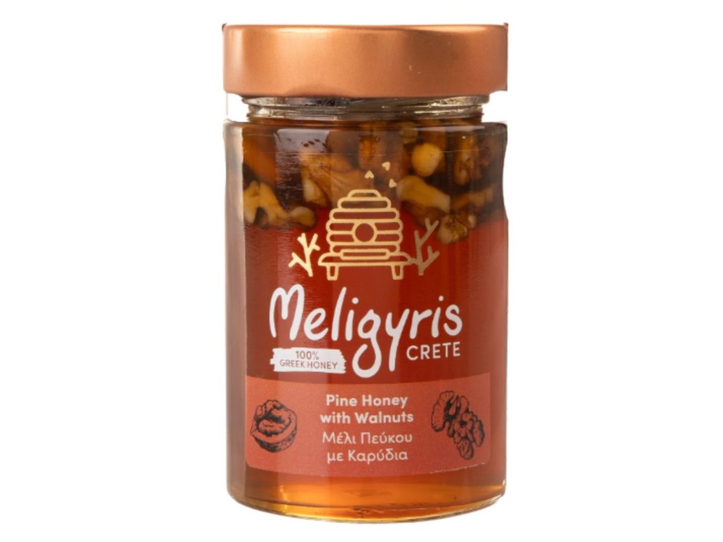 Tento borovicový med s vlašskými ořechy, mandlemi a pistáciemi pochází z Řecka, kde má borovicový med dlouhou tradici. Včely zde sbírají medovici z borovicových porostů, což dává medu tmavší barvu, hustší konzistenci a výrazné lesní aroma.