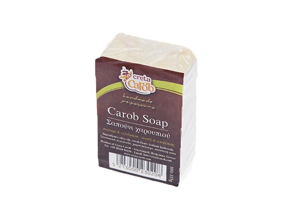 Ručně vyrobené karobové mýdlo pro všechny typy pokožky. Obsahuje panenský olivový olej a karob.
