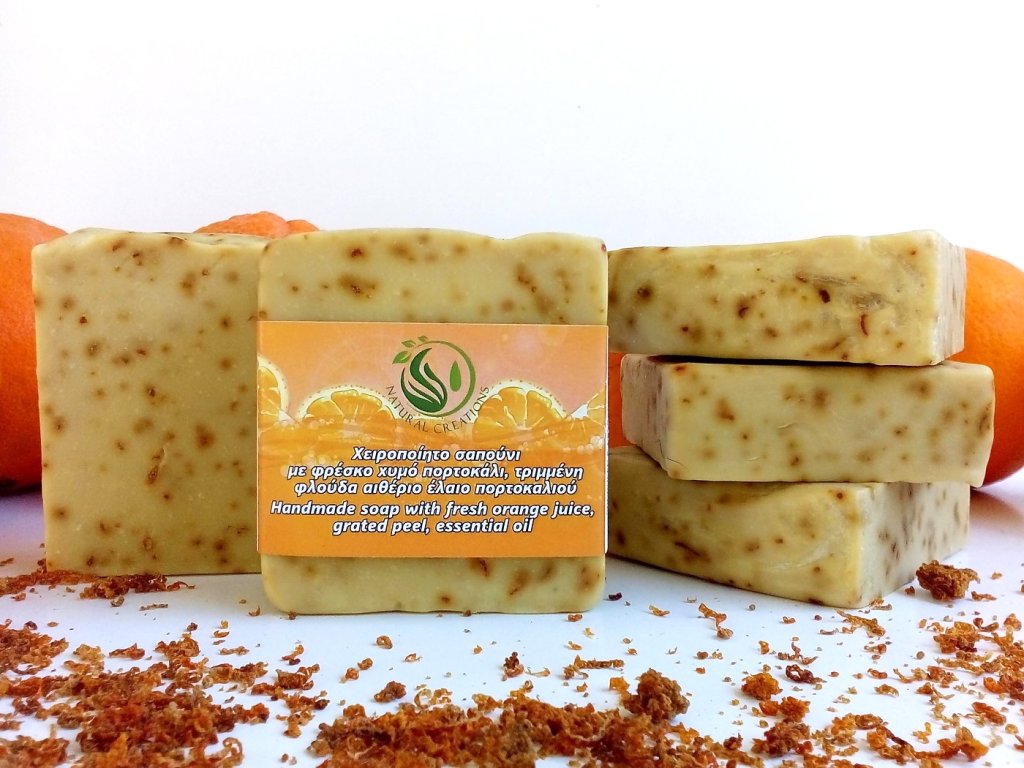 SLOŽENÍ: extrakt z pomerančové kůry v panenském olivovém oleji, kokosový olej, ricinový olej, strouhaná pomerančová kůra, čerstvá pomerančová šťáva, pomerančový esenciální olej, NaOH.
