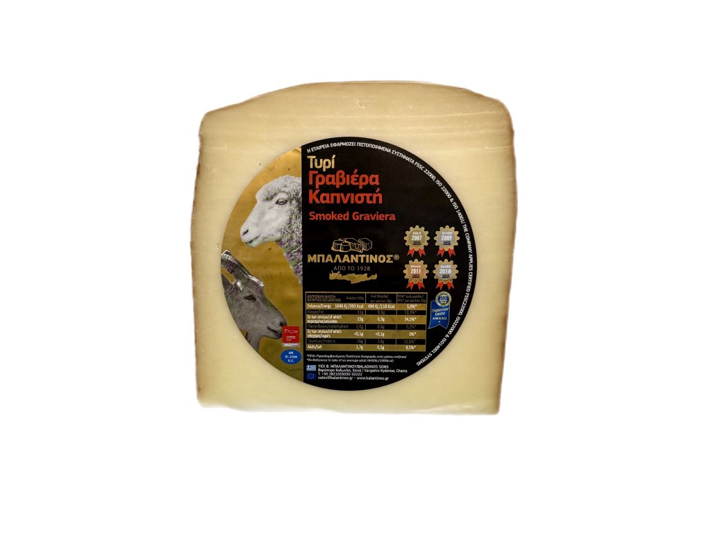 Tradiční sýr Graviera s jemným uzeným aroma byl vyroben z čerstvého ovčího a kozího mléka přímo na Krétě. Uzený proces dodává sýru intenzivní chuť, aniž by potlačil jeho přirozenou krémovost.